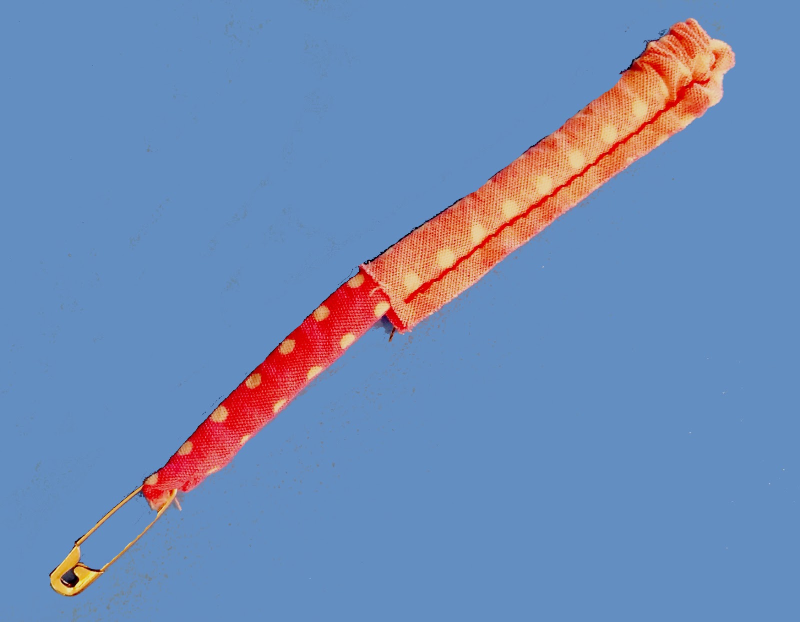 "Safety Pin Method." This is what you see Jen using in the video above and is generally my preferred method of turning. You can buy tiny safety pins (affiliate link), or save them when you buy ready-to-wear clothing - they are often used to hold the tag to the garment or to secure the extra button envelope. For these tiny tubes, you want a pin that is 1/4" wide or less.